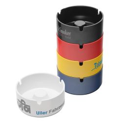 Cendrier publicitaire de table empilable en plastique fabriqué en Europe. Cendrier de table très pratique.