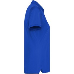Polo à manches courtes ajusté pour femme. Surpiqûres renforcées au niveau du col intérieur. Poignets et col côtes 1x1. Coutures latérales. Patte de boutonnage à 3 boutons et fentes latérales.