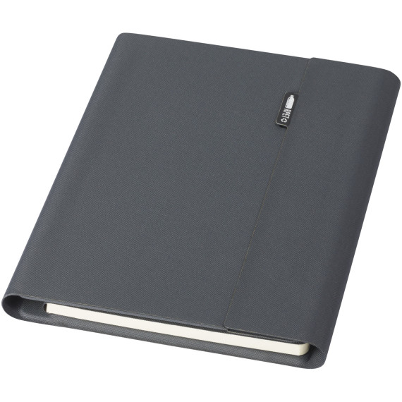 Porte-documents publicitaire Liberto. Le porte-documents Liberto certifié RCS est partiellement fabriqué à partir de polyester recyclé post-consommation, ce qui en fait un choix plus durable puisqu'il contribue à réduire l'utilisation de matières premières vierges.