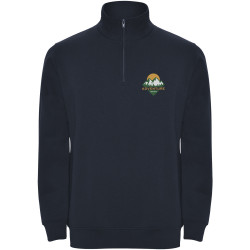 Pull publicitaire zippé Aneto avec fermeture quart de zip. Sweat-shirt avec demi-fermeture zippée assortie et col polo.