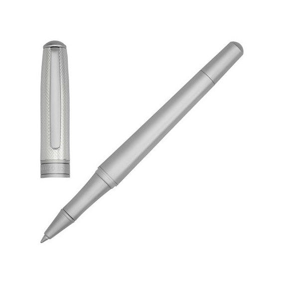 Stylo publicitaire roller Essential Metal . L'une de nos lignes d'instruments d'écriture emblématiques est rééditée avec une silhouette légèrement modifiée pour une sensation plus aérodynamique. Ces pièces monochromes, disponibles en argent ou en bronze, présentent des surfaces opposées et distinctives : des métaux plaqués mats et des surfaces gravées au diamant et ultralacquées.