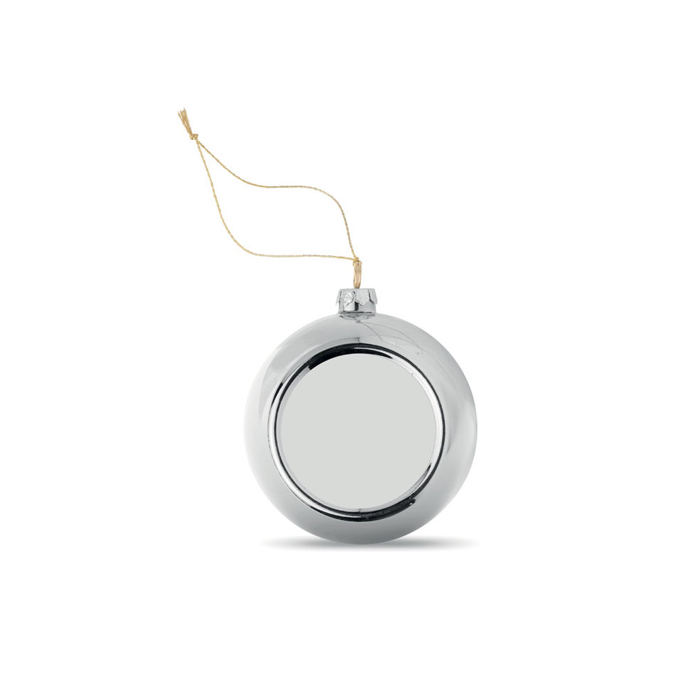 Boule de Noël personnalisable en PP brillant, comprenant plaque pour impression par sublimation. Diamètre 6 cm.