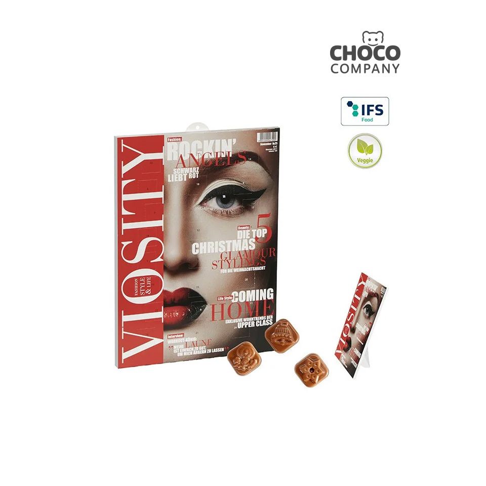 Calendrier mural et de table, format vertical ou horizontal, garni de chocolat au lait, 24 fenêtres, avec pièce emboutie rigide, collage triple.