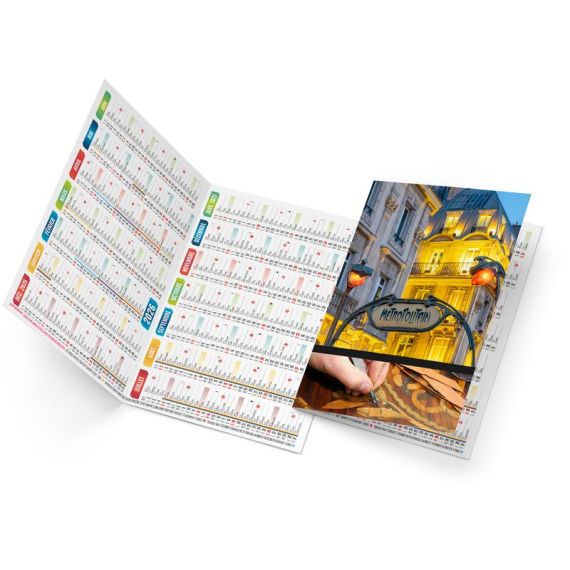 Il peut être réalisé en 100 % création. A partir de 100 exemplaires nous vous proposons votre calendrier de poche personnalisable sur mesure !