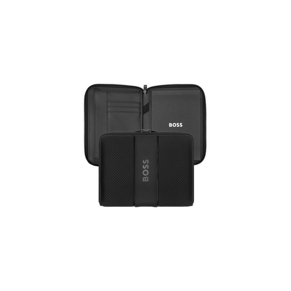 Conférencier publicitaire A5 Arche . Voici les classeurs "Arche", une fusion de design contemporain et de fonctionnalité. Disponibles exclusivement dans l'élégante couleur All Black, ces chemises présentent un matériau en maille innovant et inattendu, associé de manière transparente à un PU à finition en caoutchouc pour une expérience tactile active et attrayante. Le logo Boss surdimensionné en relief apporte une touche d'audace, tandis que les détails méticuleux, tels que les fermetures à glissière noires mates, reflètent notre engagement en faveur de l'élégance. Les chemises "Arche" sont disponibles en deux formats : A4 et A5.