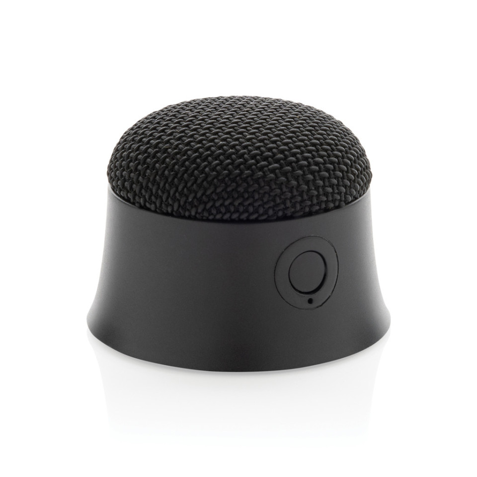 Cliquez simplement dessus et vous pourrez commencer à utiliser l'enceinte comme support mobile tout en écoutant votre musique préférée. L'enceinte peut également être facilement fixé à d’autres surfaces magnétiques comme les réfrigérateurs. Fabriquée en ABS recyclé certifié RCS (Recycled Claim Standard). Contenu recyclé total: 22 % sur la base du poids total de l'article. La certification RCS garantit une chaîne d'approvisionnement entièrement certifiée pour les matériaux recyclés. Avec une batterie de 650 mAh de qualité. Durée d'autonomie de 5 heures et peut être rechargée en 2 heures. BT 5.0 pour une connexion fluide. Câble de charge Type C en TPE recyclé inclus. Sans PVC. Emballé dans un emballage FSC mix.