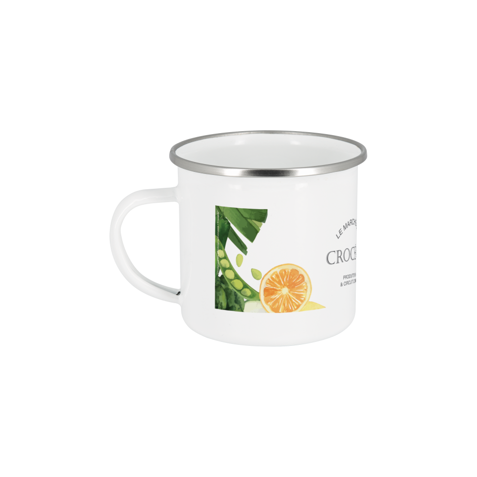 Mug Vintage acier inoxydable blanc publicitaire quadri Express. Un cadeau publicitaire placé dans les numéros un de la tendance actuelle.