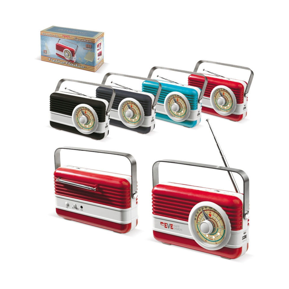 Powerbank personnalisable haut parleur 6000mAh. TopRide design Radio FM, haut-parleur et powerbank 3 en 1. Avec poignée métal. Design rétro avec antenne, haut-parleur et powerbank (6000mAh).