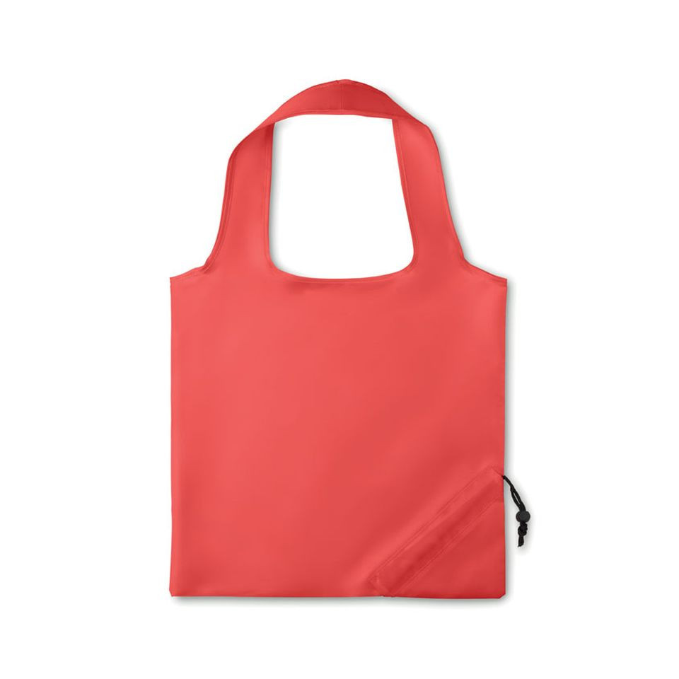 Sac shopping personnalisable pliable. Sac shopping en polyester 210D pliable dans poche intégrée et refermable par un cordon.