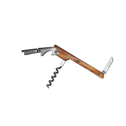 Sommelier personnalisé . Sommelier double levier, manche en olivier, mèche 5 spirales en acier inoxydable, décapsuleur, lame coupe collerette. Finition titane gris anthracite sur les leviers et la lame. Marquage possible par Gravure laser 1 Décapsuleur de 20x8 mm
