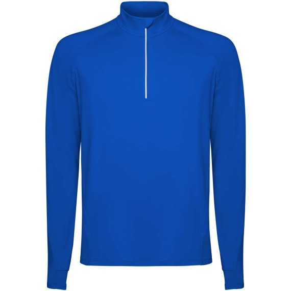 Sweatshirt technique raglan à manches longues pour homme. Col demi-zip et détails réfléchissants. Surpiqûres renforcées. Poignets avec ouvertures pour le pouce. Détails réfléchissants au dos. L’ourlet du dos est légèrement plus long que celui du devant. Tissu intérieur chaud et brossé.