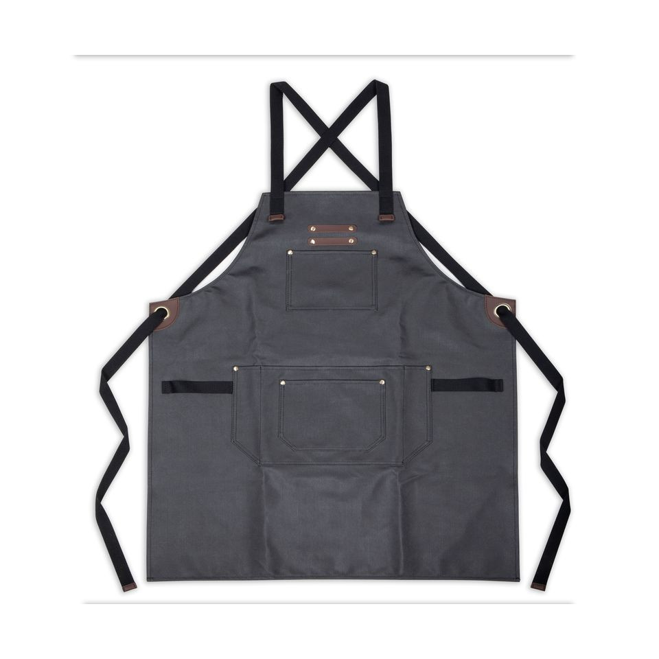 Tablier personnalisé en toile enduite et cuir. En toile enduite et cuir.